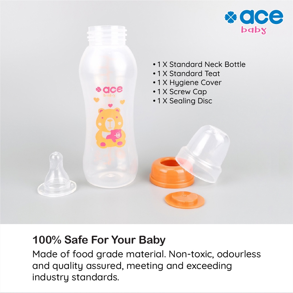 ACE BABY Standard Neck Bottle 8oz/4oz/2oz (240ml/130ml/60ml) Anti Colic BPA Free Feeding Milk Botol Susu 157 156 146